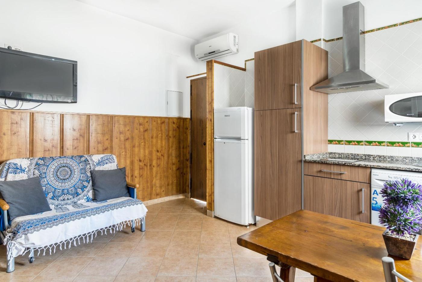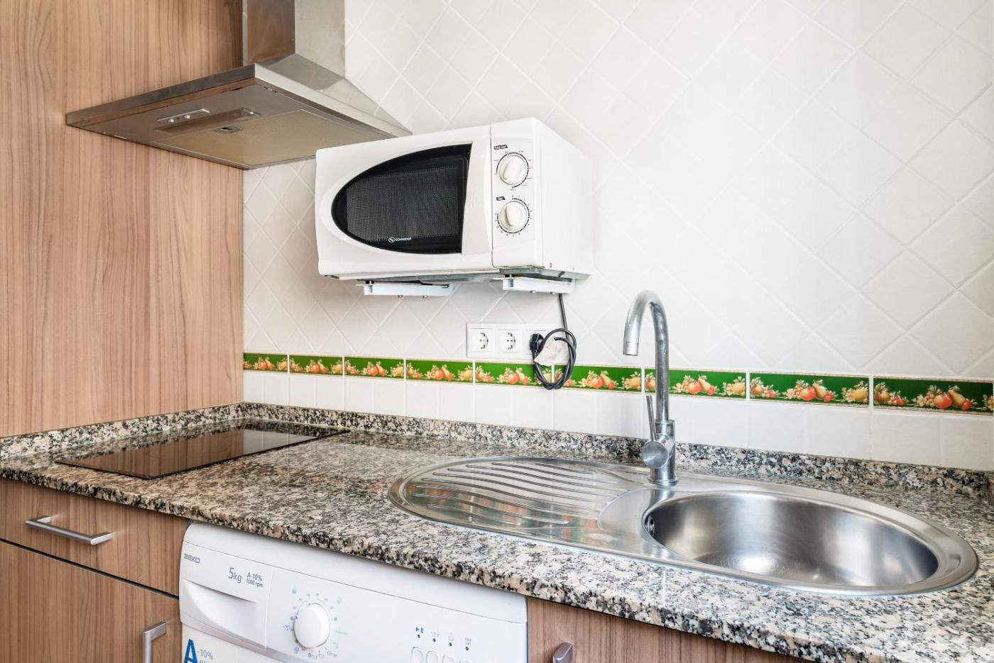 Apartamento con ducha. Featuring a private entrance, this air-conditioned apartment consists of 1 bedroom and 1 bathroom with a shower. The kitchen is equipped with kitchenware, a microwave and a toaster. This apartment features a washing machine, a coffee machine and a TV. The unit offers 3 beds.