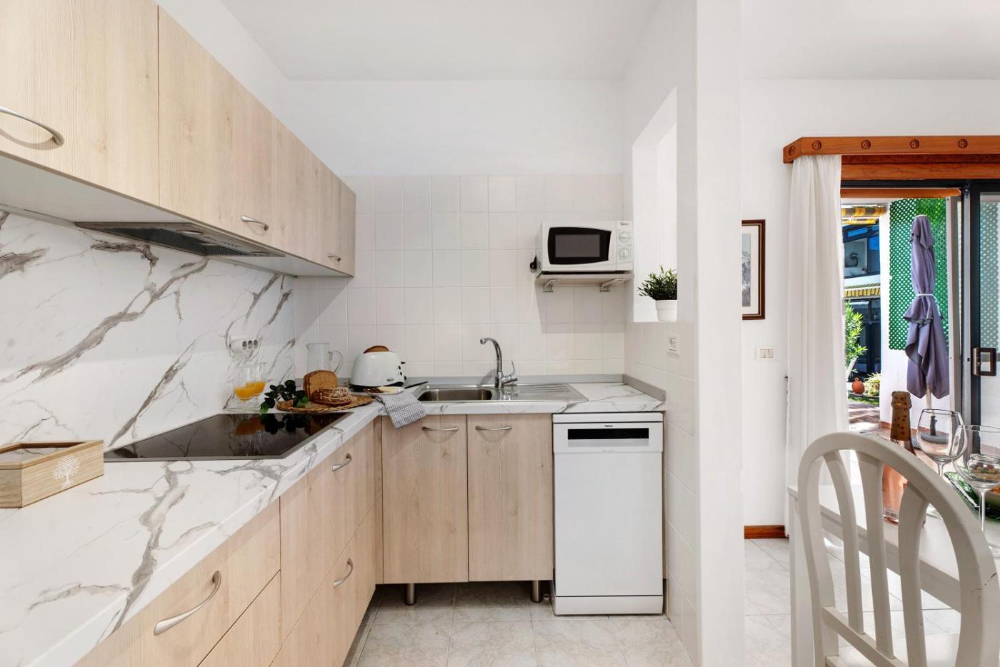 Casa con 1 dormitorio. Featuring a private entrance, this air-conditioned holiday home consists of 1 living room, 1 separate bedroom and 1 bathroom with a shower and a hairdryer. The fully equipped kitchen features a dishwasher, kitchenware, a microwave and a toaster. Boasting a terrace with garden views, this holiday home also provides a washing machine and a TV. The unit offers 3 beds.