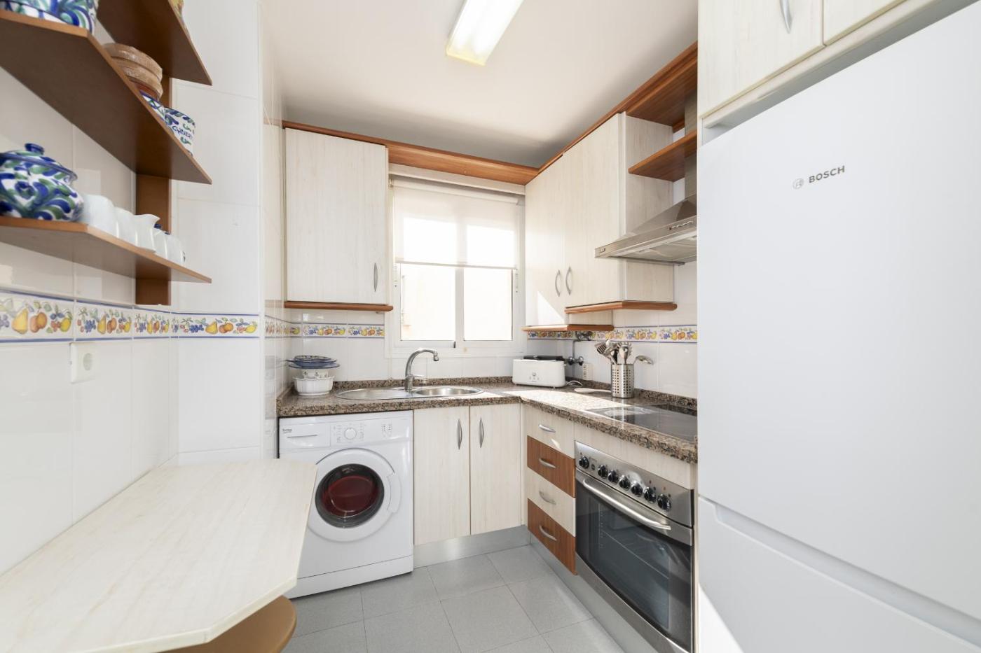 Apartamento de 2 dormitorios con vistas al océano. The spacious apartment has 2 bedrooms and 1 bathroom with a bath and free toiletries. Guests can make meals in the kitchen that features a refrigerator, an oven, a microwave and a toaster. This apartment is air-conditioned and features a seating area with a flat-screen TV, a washing machine, a coffee machine, a dining area, as well as a wardrobe. The unit has 3 beds.